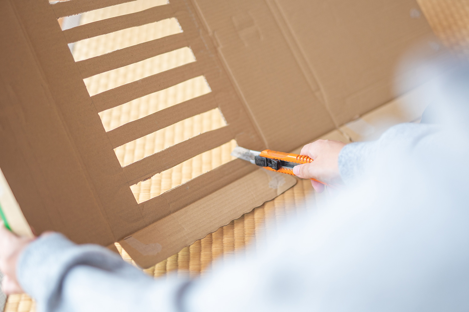 作品を持ち帰って家に飾れるように、20センチ四⽅のベニヤ板のステージをご⽤意します。その上に、⾃由にさまざまな素材を使⽤しながら、こどもが考える夢のお家をつくります。こども達の⾃由な発想はどんなお家を完成させるのか? 楽しみです!